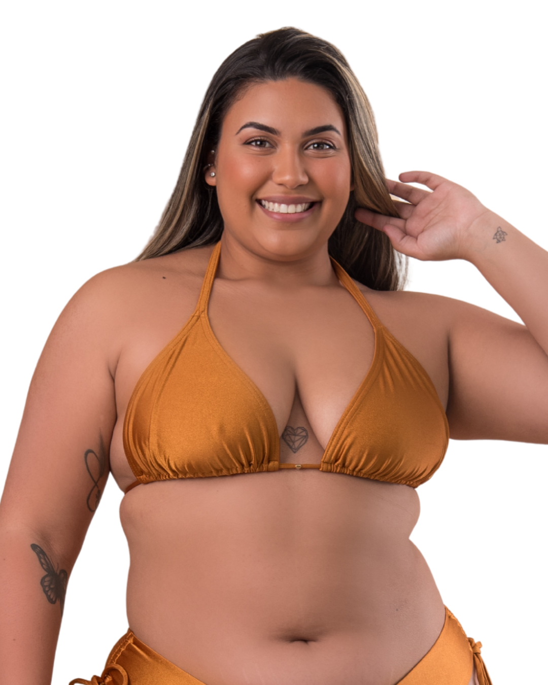 O cortinão marquinha plus é um modelo de top de biquíni pensado especialmente para mulheres com seios maiores que desejam conforto, sustentação e aquele visual clássico da marquinha de sol perfeita. Sem bojo e sem aro: para um caimento natural e confortável. Com amarração no pescoço e costas, permite ajuste personalizado e favorece a marquinha desejada.
