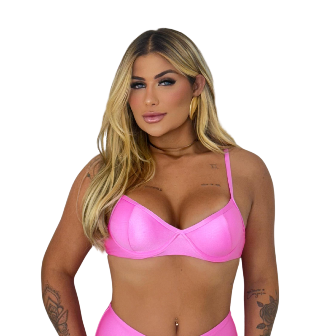 Top de biquini meia taça com arco, base e bojo. Com alças livres para amarração no pescoço ou argolinha nas costas, e ganchopersonalizado para o fechamento. Tecido com toque macio e resistente ao cloro de piscina e com proteção dos raios UVA e UVB. Evite contato da peça com bronzeadores, protetores, hidratantes, solventes. O uso prolongado em piscinas com excesso de cloro diminui a durabilidade da peça. Após o uso, lave sua peça imediatamente em água abundante com sabão neutro, não deixa de molho e nem misturar peças de outras cores, lavar à mão (não lavar em máquina de lavar), secar à sombra, não torcer e não passar ferro. Guarde as peças com bojo aberto para não amassar.